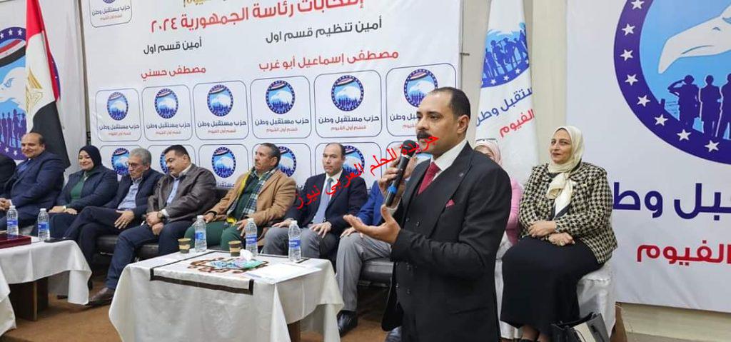 في كلمتة وجه الجارحي الشكر لأمانة الحزب ببندر اول الفيوم لما تم بذله من جهود خلال الفترة الماضية خاصة خلال الإنتخابات الرئاسية 2024