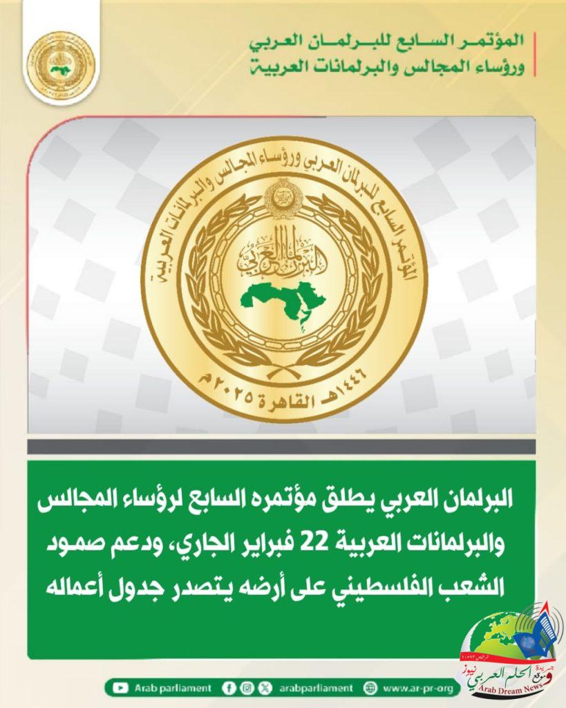 يعقد البرلمان العربي مؤتمره السابع لرؤساء المجالس والبرلمانات العربية بمقر الأمانة العامة لجامعة الدول العربية بالقاهرة في 22 فبراير الجاري، وذلك بمشاركة عربية برلمانية واسعة.
