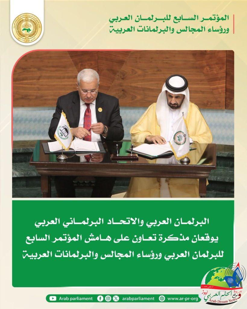 وقع مذكرة التعاون عن البرلمان العربي معالي محمد بن أحمد اليماحي بصفته رئيس البرلمان العربي ، وعن الاتحاد معالي إبراهيم بوغالي بصفته رئيس الاتحاد البرلماني العربي.
